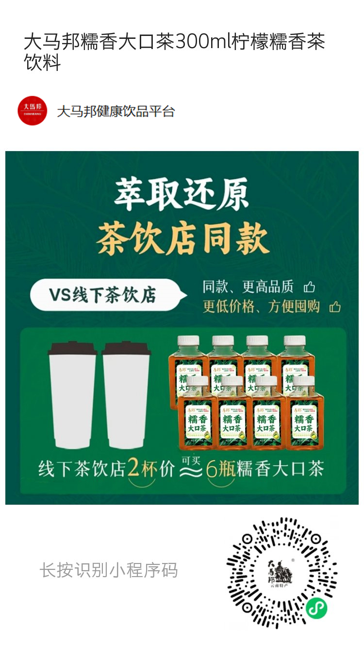 大馬邦糯香大口茶300ml檸檬糯香茶飲料